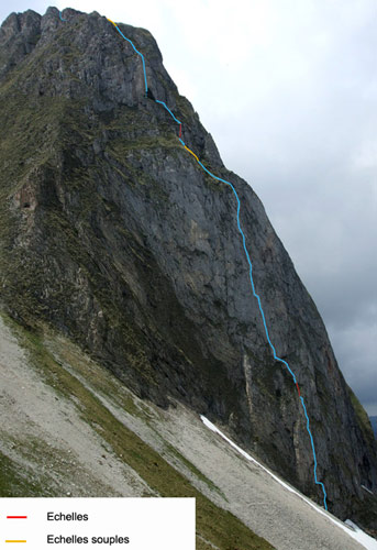 A pratiquer uniquement par temps sûr, car il n'y a pas d'échappatoires. Du névé persistant au départ, sur les vires plus en altitude et sur le sentier du retour de la face nord souvent au début de l'été (se munir le cas échéant de crampons et de piolets - mais à charge de savoir s'en servir).