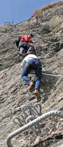 This Via Ferrata is very well equiped and it has many points of contact with the rock. With a little bit of luck, you might even catch a sight of some alpine ibex nearby. But, to see them… shhhhh!