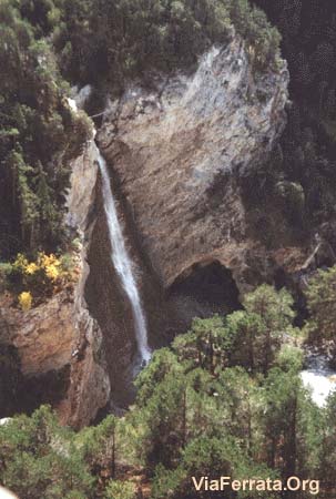 Depuis le parking, on suit le sentier se dirigeant vers la falaise du site d’escalade puis vers la droite pour accéder en 20 minutes au total au pied du 1er ressaut de la via Ferrata