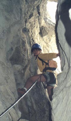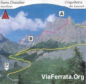 Une courte montée aboutit à la dernière traversée, au bout delaquelle on peut choisir des sensations plus fortes dans le surplomb de la sortie àla R’Tourne, ou bien la solution confort avec la sortie des Aravis.