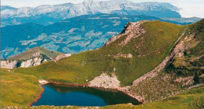 After the "ladies' pleasure": a beautiful combination of comfortable rocky sections fenced by two overhanging sections; then the magnificent lapiez slab which follows a fairly natural projection, before the big Gardener's traverse which alternates between rocky sections and comfortable grassy ledges.