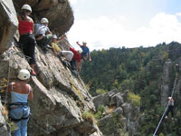 La via ferrata du Malzieu, Malzieu-Ville en Losère, France est équipée d'un dispositif spécial adapté aux personnes déficientes visuelles.